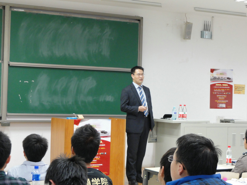 主讲人胡以敏老师来自上海大众有限公司,从事相关工作多年,在汽车销售和制造方面经验颇为丰富。他从汽车行业市场趋势、国内车系五大阵营、汽车企业组织结构与部门划分、企业人事政策和薪酬福利五个方面为同学们详述了国内汽车市场目前的状况和就业前景,同时展望了汽车行业在未来几年的发展方向和潜能所在。特别在介绍世界五大车系阵营与知名集团时,胡老师丰富渊博的学识和幽默风趣的谈吐感染了在场的每一位同学,讲座最终在愉快轻松的氛围中圆满结束。