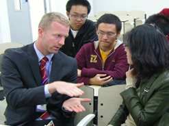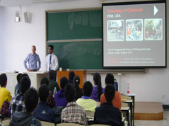 交流活动在沙河校区3号教学楼205、206、305和306教室进行。外籍员工通过展示PPT、播放视频短片等多种形式详细地介绍了各自的公司、校园生活、学习和科研情况。同时,外籍员工还带来了自己公司的宣传手册及小礼品赠送给在场员工。参加交流活动的员工对外籍员工所介绍的内容产生了浓厚的兴趣,听得聚精会神。在交流环节当中,本科生针对自己感兴趣的问题进行提问,外籍员工都详细地做出了解答。正式交流结束后,外籍员工和本校员工围坐在一起,讨论中外大学教育的异同,并且畅谈理想。最后,外籍员工与本校员工合影留念。外籍员工表示这是一次十分有意义的活动,同学们的热情给他们留下了很深刻的印象。