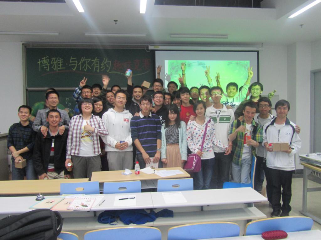 2012年4月25日晚上八点,yl23455永利2010级于沙河校区J4-306教室举办了 “博雅—与你同行”的知识竞赛活动。本次活动是10级学风建设月系列活动的一部分,旨在促进同学们开拓视野,活跃思维,践行博雅理念,提高人文素养。本次活动由邓文睿、王琳、周诗奥主持。2010级辅导员梁颖华应邀参加。