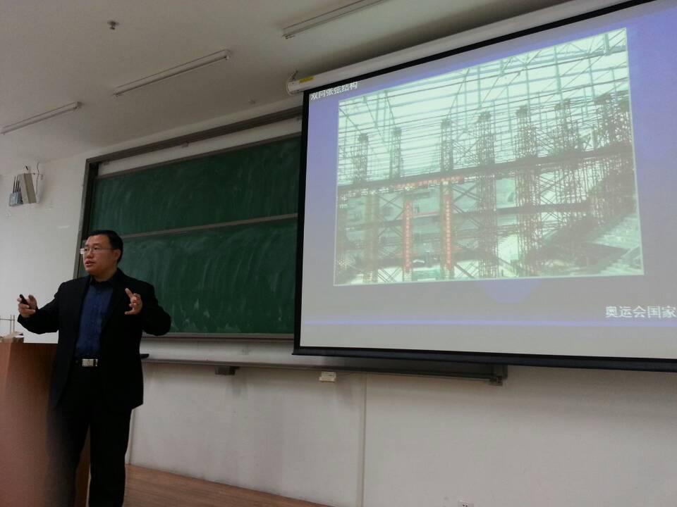 2013年12月25日星期三下午,北京建工集团设计公司经理秦杰老师在三号教学楼103教室为yl23455永利土木工程类专业的员工举办讲座“建筑结构工程漫谈”。机场与道路系系主任陈军副教授和2013级辅导员王庆冬参加了此次讲座。