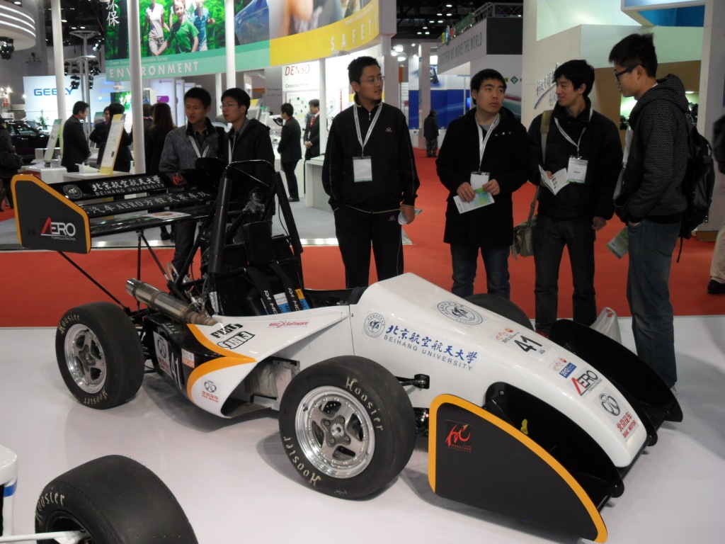 北航-北京汽车AERO方程式赛车队此次参展在展示自主设计制作的方程式赛车的同时,也向外界呈现了一支斗志昂扬、勇于创新的车队。车队在2012年度的老员工方程式大赛中取得了全国第13名的历史最好成绩,他们身上传承着北航人自强不息的血液,也是北航人的骄傲。让我们共同期待北航-北京汽车AERO方程式赛车队在未来续写辉煌!