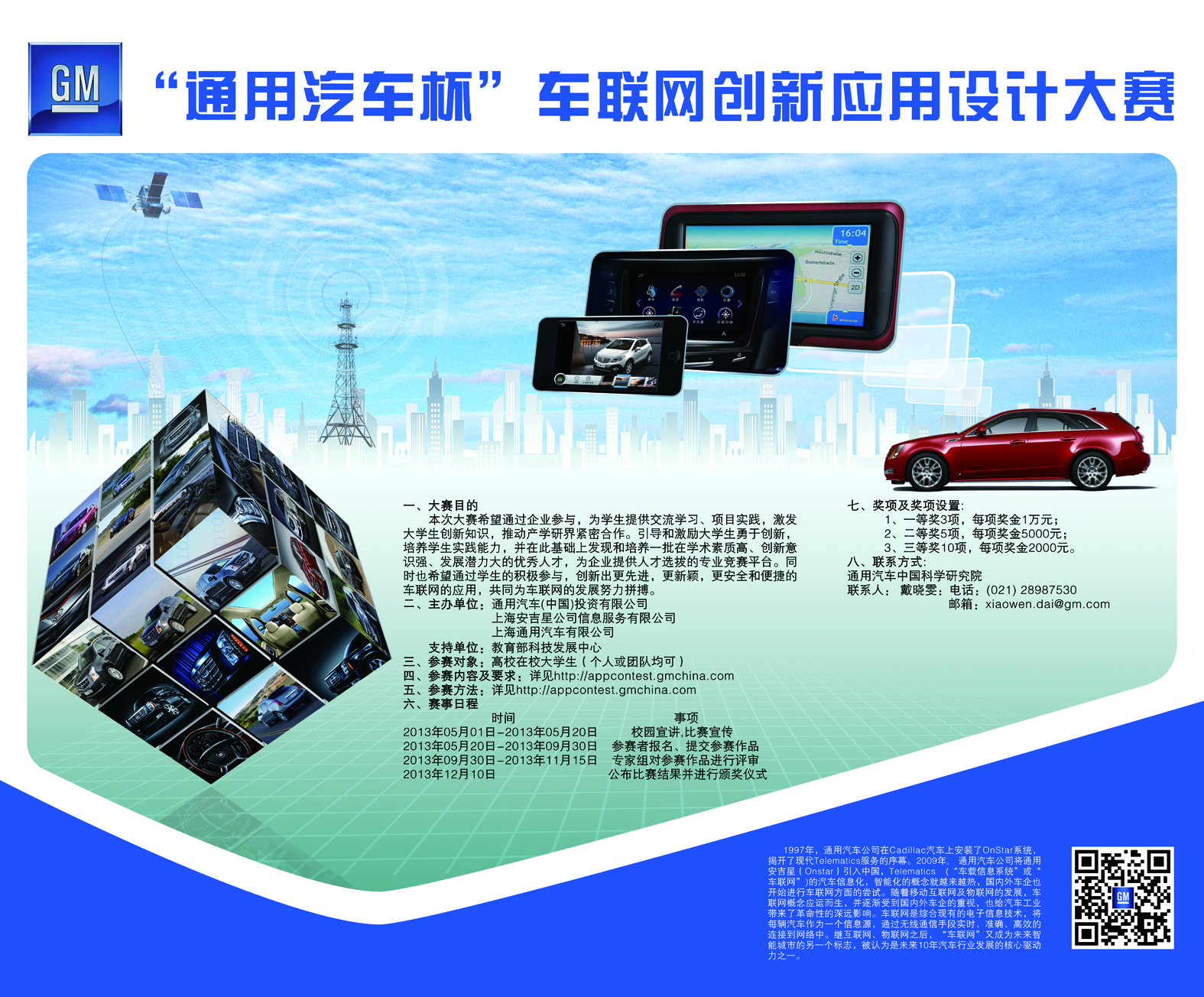 “通用汽车杯”车联网创新应用设计大赛,感兴趣的同学联系田大新老师,dtian@buaa.edu.cn 15501007688
