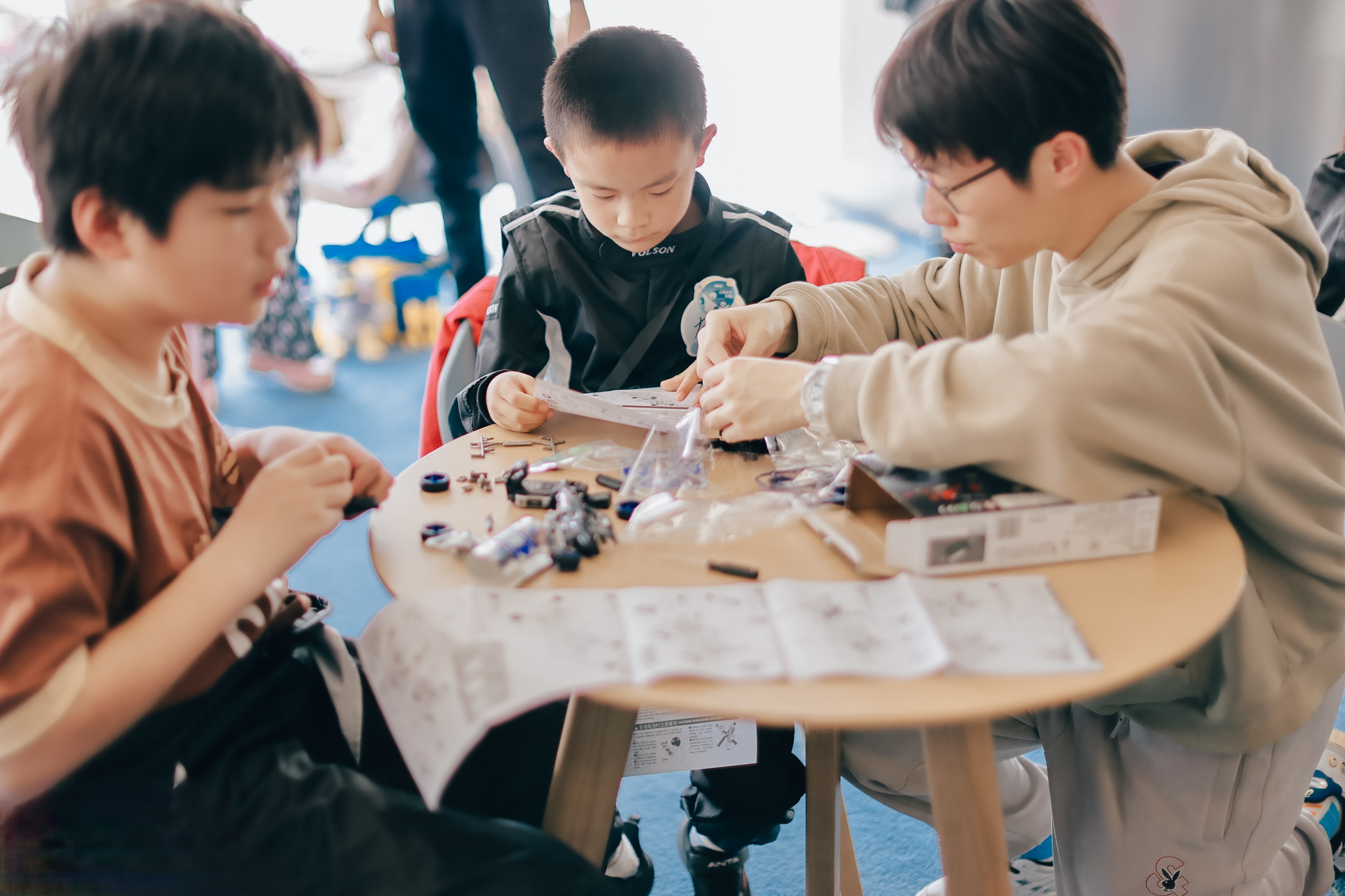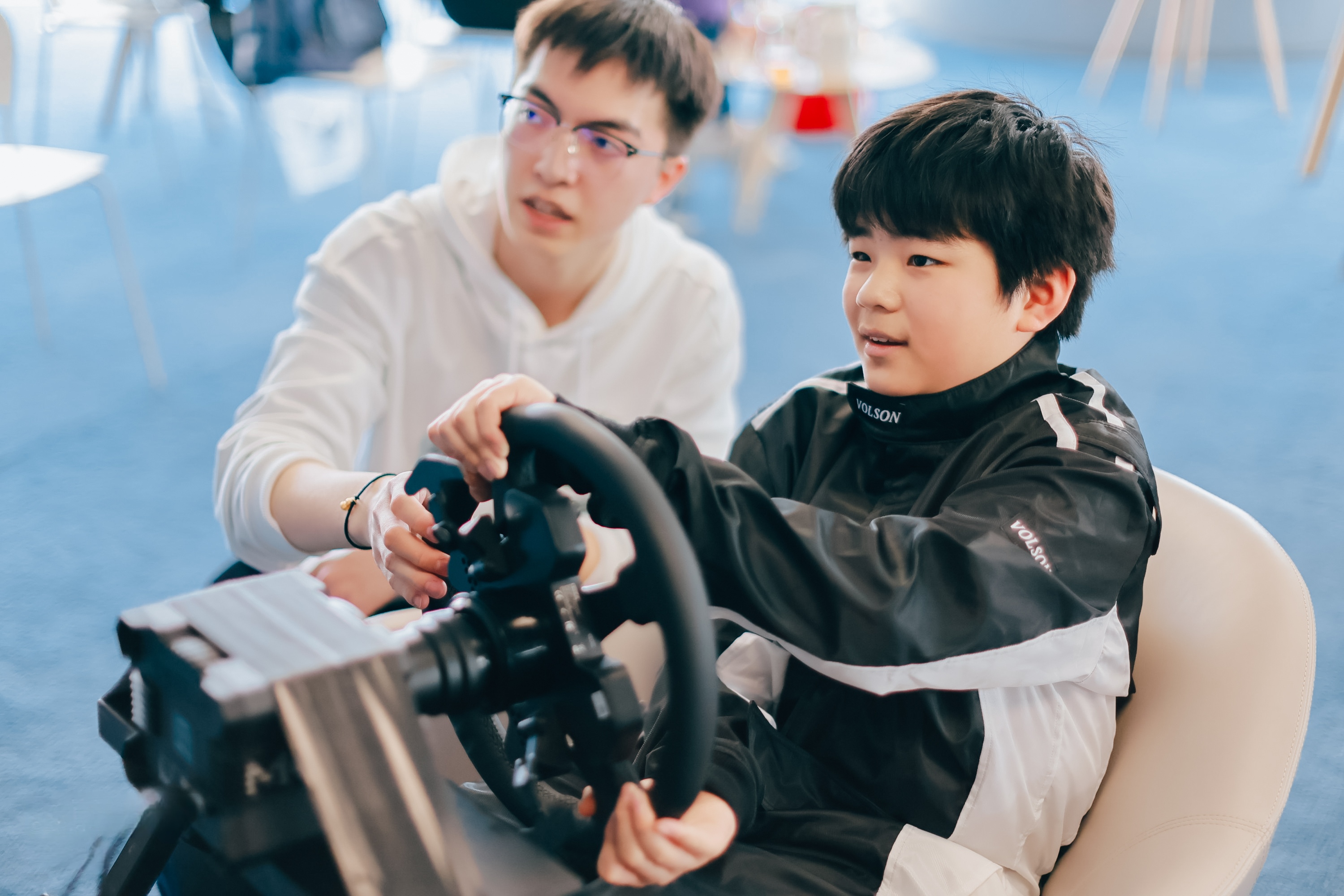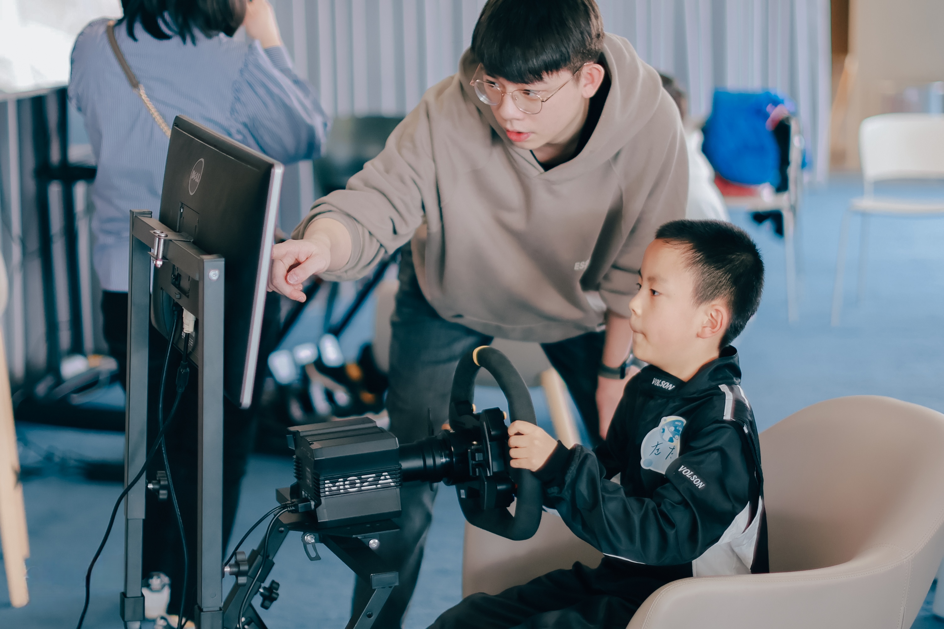 在驾驶模拟器体验环节中,科普志愿者指导员工们亲手驾驶赛车模拟器感受赛车运动的激情和风采,在实际操作中学习赛车和赛道知识,感受贴地飞行带来的极致驾驶体验。同时,科普志愿者也指导其他员工进行小赛车的拼装活动,耐心讲解如何参看图纸并注意装配要领,寓教于动手实践,提高员工动手能力的同时加深对赛车基本组成零件及其作用的了解。
