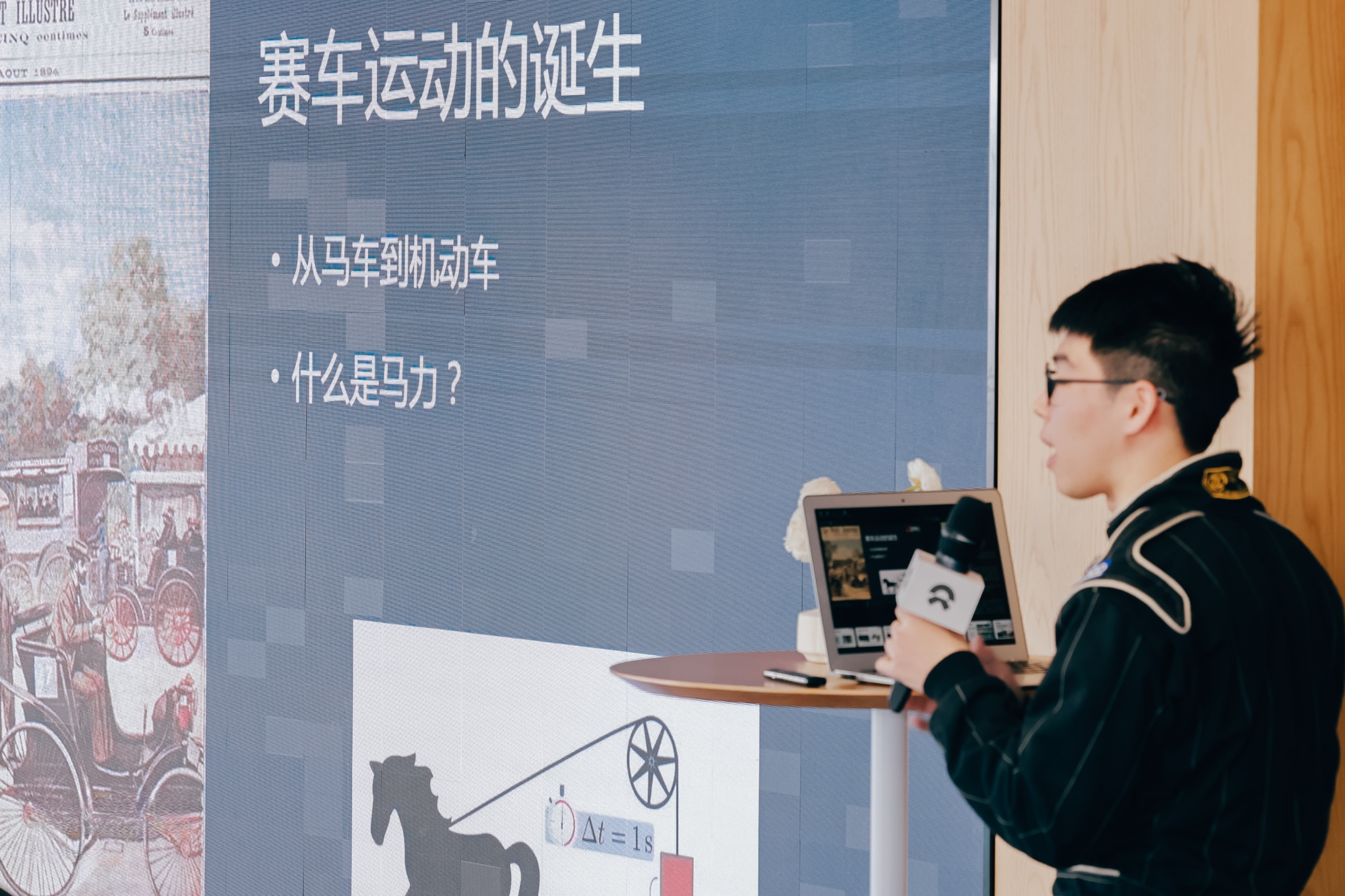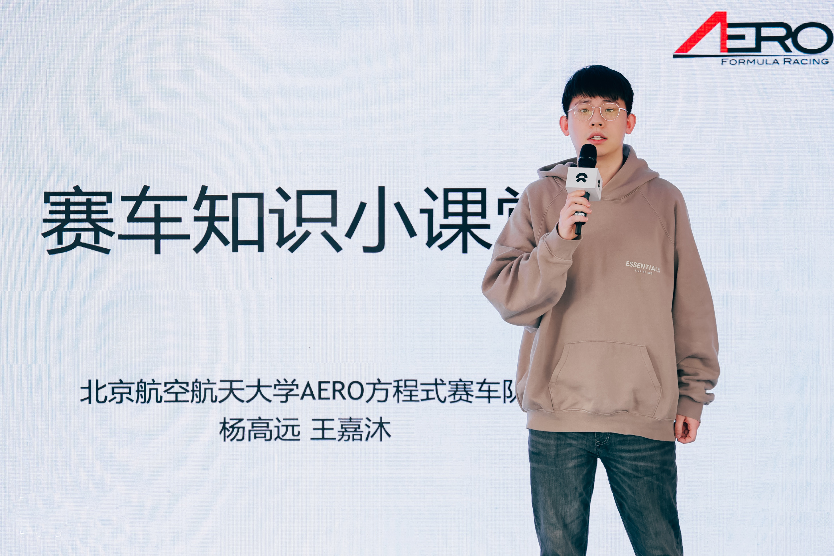 参观实车模型后,AERO方程式赛车队车手王嘉沐、工程师杨高远向员工们介绍车辆发展历史、赛车运动和文化以及赛车队发展情况,通过赛车队比赛视频生动展示北航学子风采,并对新能源汽车发展和交通安全进行着重讲解。