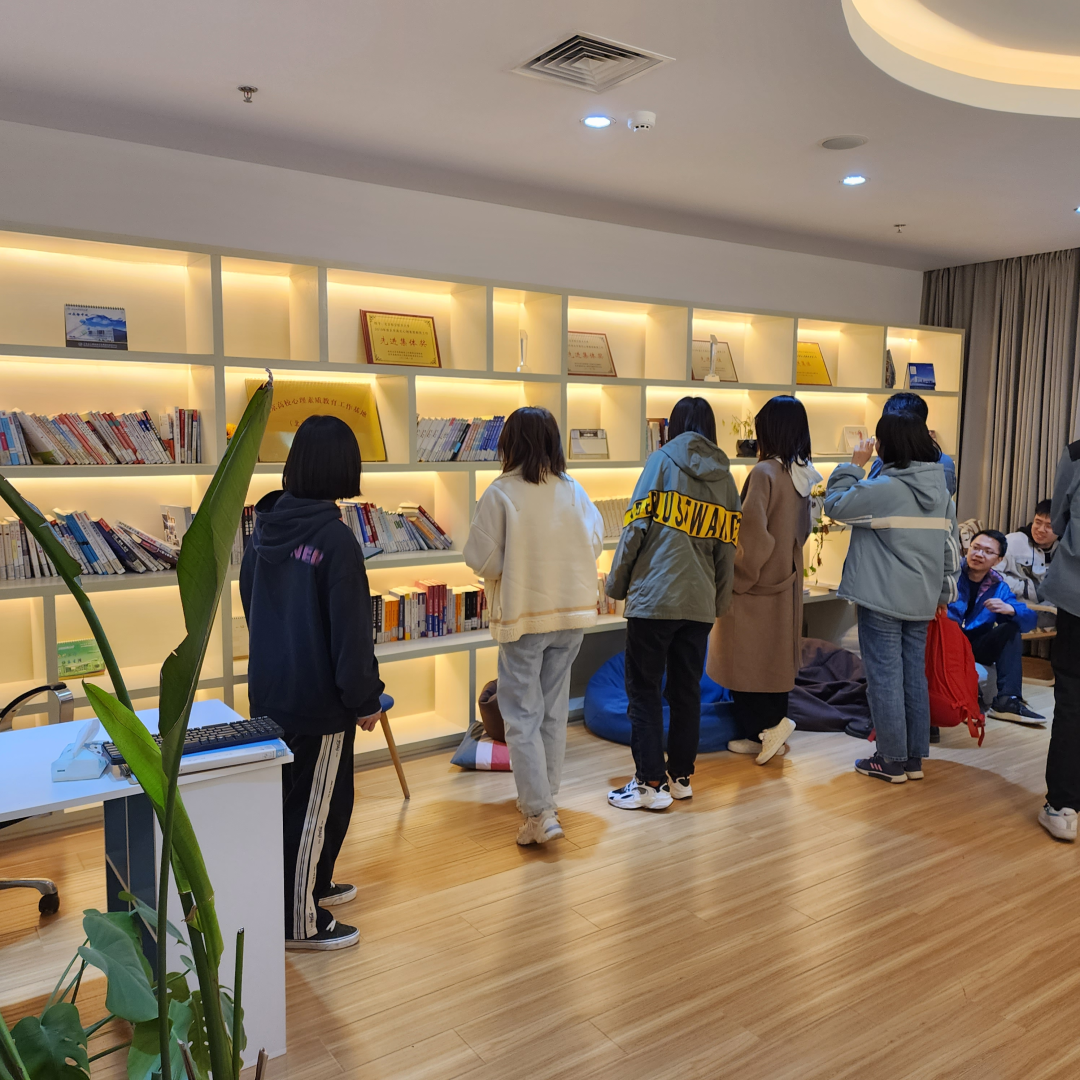 随后同学们在工作人员的带领下进行心理中心各个房间的参观以及服务体验,其中有阅读室、公共活动室、音乐室、解压空间以及VR体验馆等。同学们在阅读室中看到琳琅满目的心理书籍;在公共活动室中进行了解压小游戏;在音乐室中进行了各种音乐器材的体验;在解压空间通过解压沙袋放松身心;在VR体验馆通过戴上VR头盔进入虚拟场景,体验了不同的情境,如高空飞行、海底探险等。