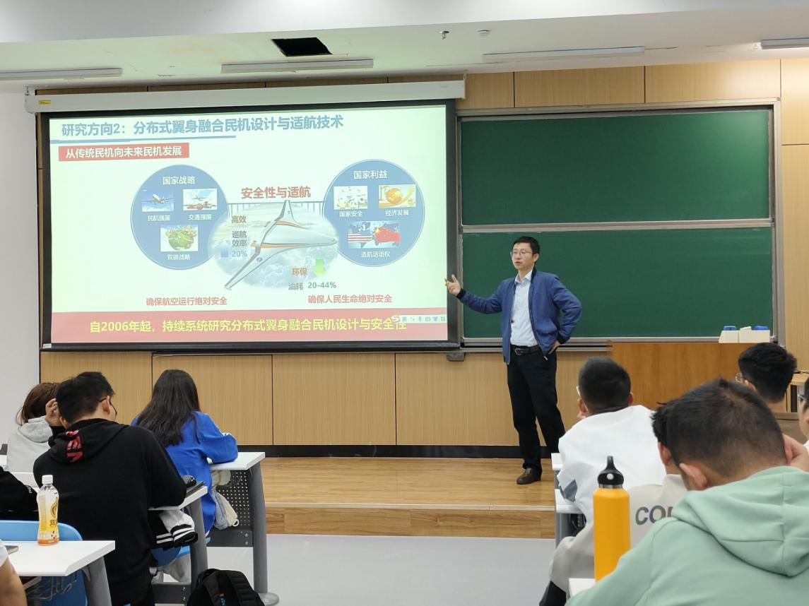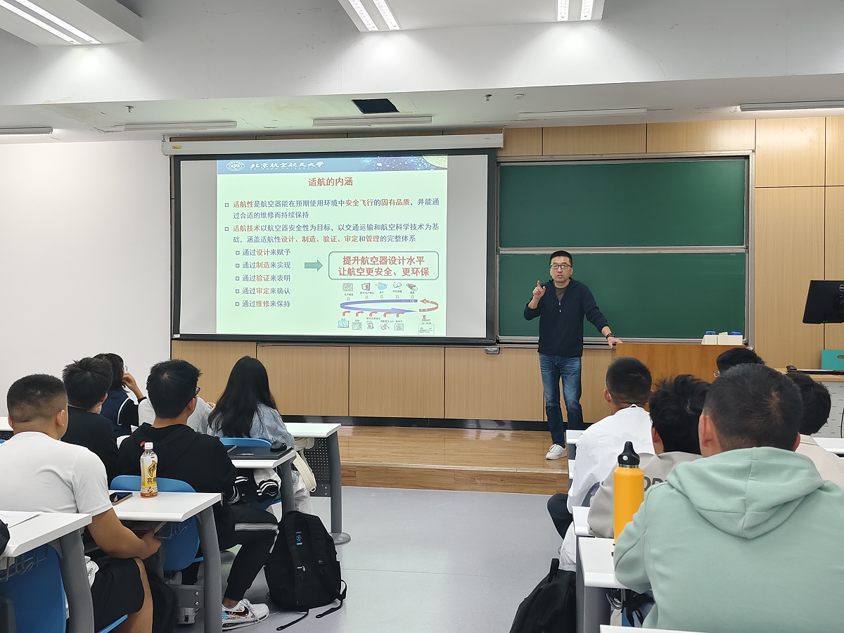10月18日下午,刘晓锋教授为同学们讲解了飞行器适航技术专业总体情况,深入解析了适航的内涵。适航技术以航空器安全性为目标,以交通运输和航空科学技术为基础,涵盖适航性设计、制造、验证、审定和管理的完整体系。飞行器适航技术专业以飞行器适航技术为特色,致力于提升航空器安全水平,让航空更安全、更环保。