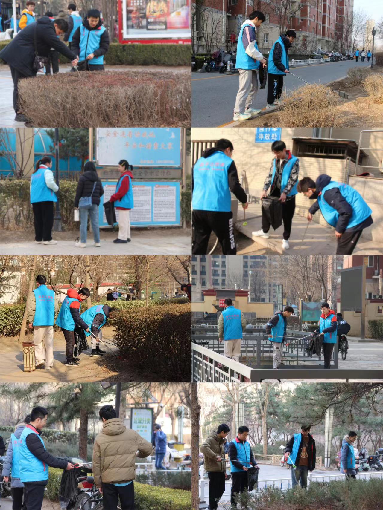 志愿者们以四人一组,合理分工、密切配合、勤勤恳恳,手持着垃圾袋和垃圾夹,齐心协力地俯身在社区的绿化带中捡拾各种大小垃圾杂物。他们身着统一的志愿者服装,在蓝天白云下,仿佛连成了一道靓丽的风景线,格外引人注目。这和谐的景象不仅清洁了社区,也感染了路过的居民,让他们忍不住驻足观看,心中涌现出对美好环境的向往与珍惜。