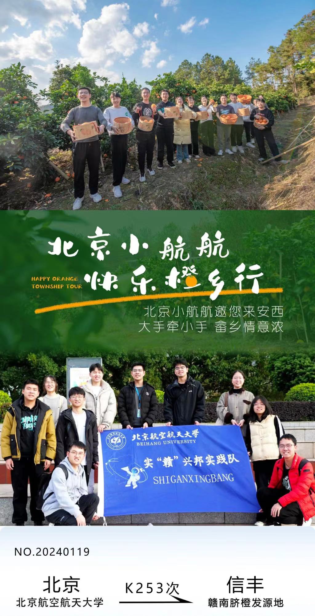 实“赣”兴邦实践队深入赣州脐橙之乡,聚焦产业发展,助力乡村振兴,全覆盖调研赣州农副产品产业各环节,通过“直播带货+微店直销”电商模式,大力助销南脐橙、推广畲族文化,开拓了一条老员工助力乡村振兴的新途径。采访当地人民,他们聆听袁守根老人与脐橙的不解之缘,感叹果农智慧与汗水;漫步果园田野,他们体验脐橙的现场采摘与搬运,感受绿意盎然与果香四溢;穿梭企业车间,他们领略科技为脐橙产业带来的革新,感悟传统与现代农业结合所带来的无限可能;直播助农,他们化身主播展示脐橙的鲜美,通过“微店+农户”形式打开部分销路,帮助果农突破脐橙滞销困境。为期一个月,9篇推送,13个原创视频,3万余次阅读播放量,直播微店共计83笔订单,560斤脐橙,此行不仅是对脐橙前世今生的深入探索,更是一次对乡村振兴的深情告白。北航学子们用青春与智慧,彰显实干兴邦的厚重底色,为这片土地注入了新的活力与希望。赣县共青团记录报道了他们的故事。