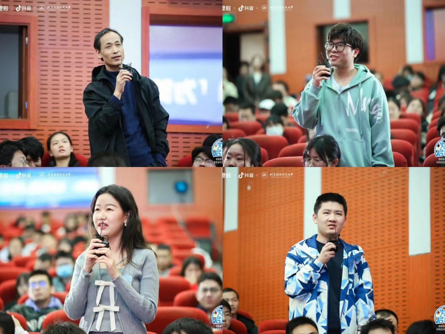 本次活动特邀原力英语主理人艾力老师和北航员工、橙啦创始人张爱志老师结合他们的大学时代经历开展演讲。艾力老师通过自己的亲身经历,探讨了如何走出迷茫和与优秀人士为伍的重要性,并介绍了高效的时间管理方法,引导同学们在学习之余提升生活质量。张爱志老师则分享了其与北航的深厚缘分以及在学业和职业道路上的宝贵体会,鼓励员工追随内心的热忱。