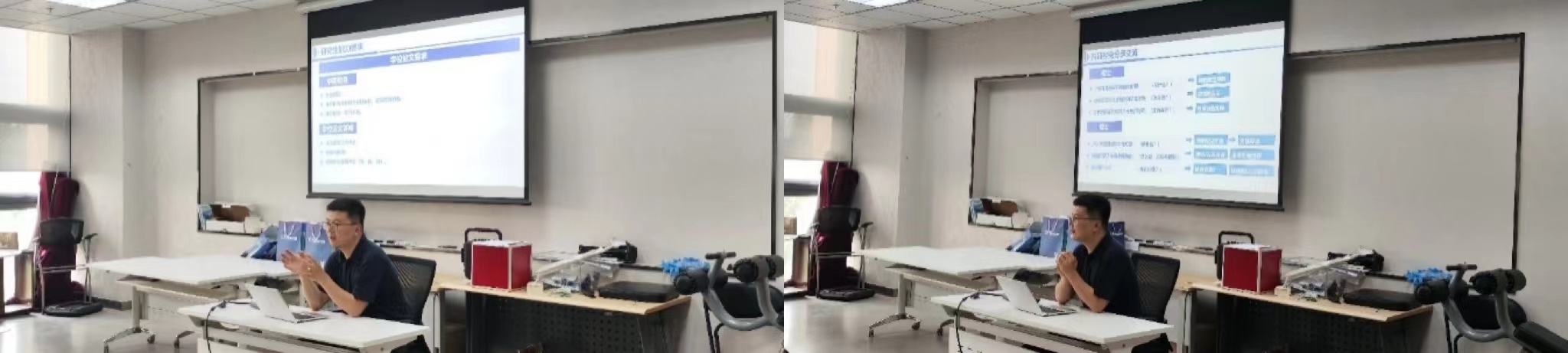 然后,周老师就中期答辩准备工作进行了详细介绍,他建议同学们对照开题报告,检查研究内容的一致性、及时更新研究进展,对研究工作进行评估的同时,对自身科研成长、收获进行梳理,在答辩过程中,充分展现出对论文题目的深刻理解和研究工作的全面掌握。