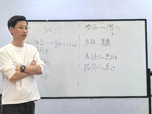 王小平从车企发展近况切入,围绕就业求职前期准备工作和同学们开展了深入交流,以“看行业-定目标-选专业”概括了锚定求职方向时需完成的向内挖掘,强调了步入岗位时取舍理念的重要性。在前期面试经验积累方面,王小平建议同学们明确目标导向,强调实践锻炼,剖析企业招聘应届生个人能力和发展潜力“投资”需求。