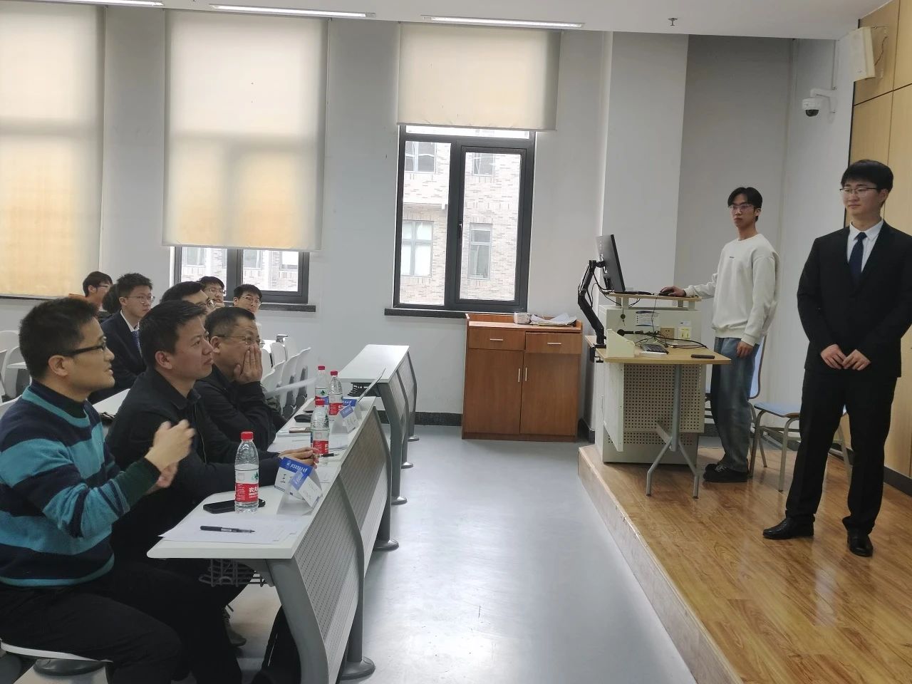 会议伊始,主持人介绍了与会的评委老师,明确了评审规则和答辩要求。随后,各项目答辩选手依次上台答辩。选手们充分准备,从项目背景、技术方案、创新特色、应用前景等多个维度向评委介绍项目内容,并以实物、视频、仿真实验等多种方式展示项目成果。评委结合申报材料和展示内容对项目进行点评提问,从参赛题目、项目思路、答辩技巧等方面提出具体建议,并根据评审细则对每个作品打分。