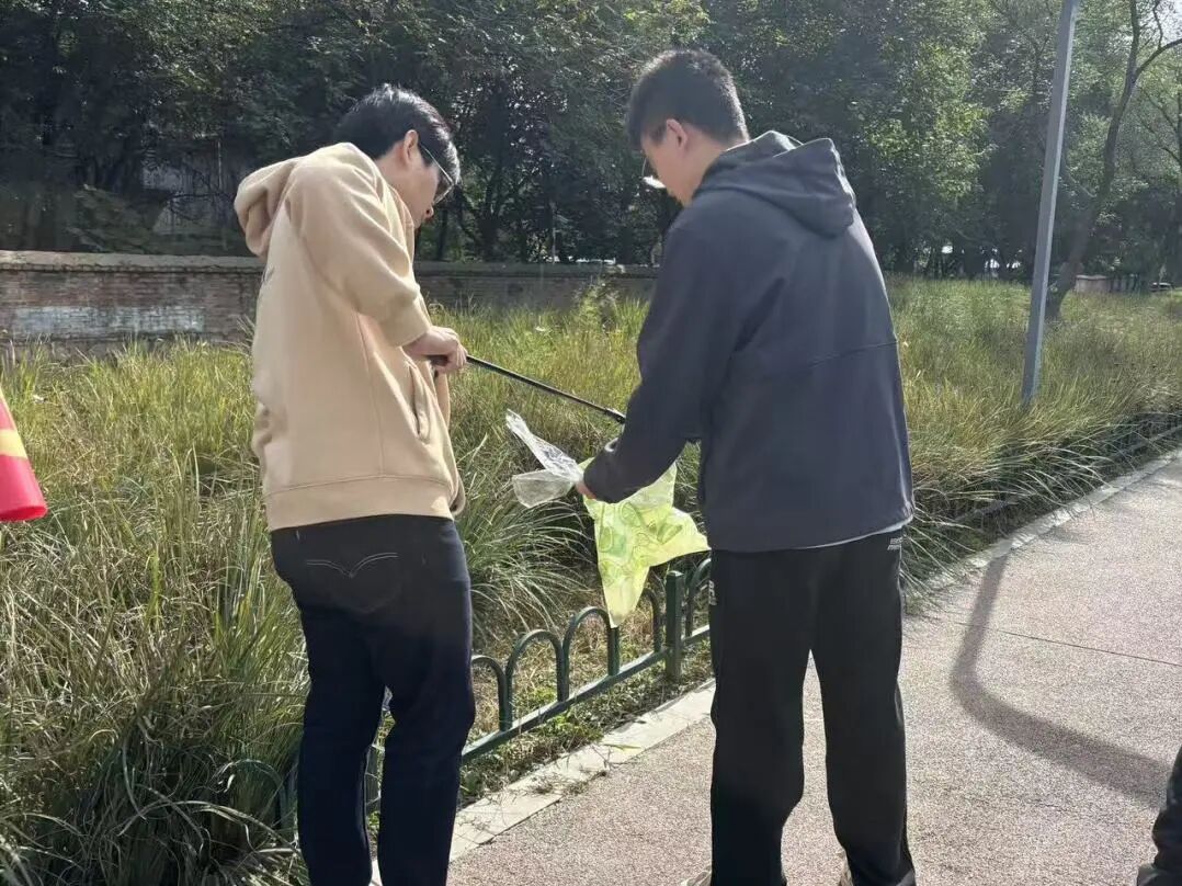 黄耀莹同学补充道:“亲手让公园环境变得更整洁,带来了很强的成就感和满足感。这次经历也提醒我,环保意识应时刻体现在日常生活中。”本次环保徒步公益活动不仅增强了同学们的环保意识与社会责任感,也为博士生们提供了宝贵的交流平台,有效缓解了科研压力,是促进员工全面发展的有益实践。