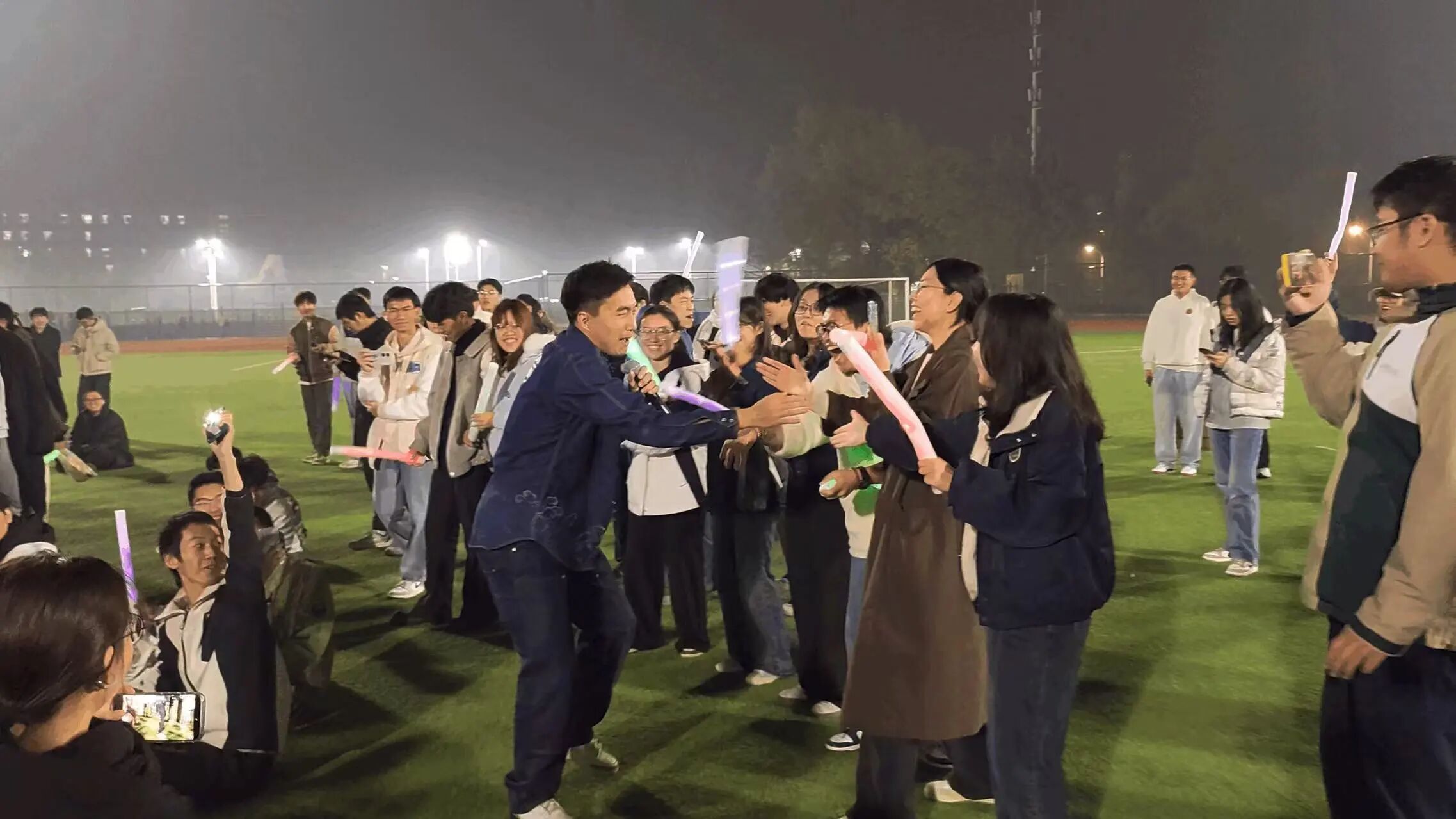 乐队强大的舞台张力点燃了秋夜的空气,让操场提前“沸腾”。